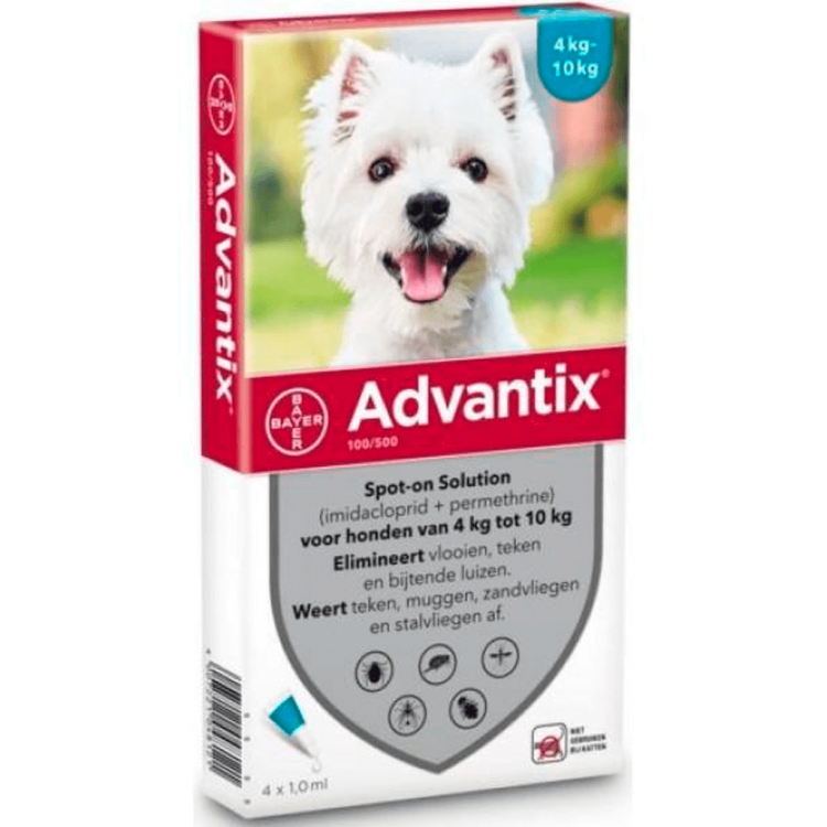 Solução de unção punctiforme antiparasitas para cães, dos 4 aos 10kg, para prevenção e tratamento em caso de pulgas, larvas, carraças, piolhos, moscas e mosquitos. Ajuda ainda a reduzir o risco de transmissão de leishmaniose canina e erliquiose canina. Não deve ser utilizado em cães com menos de 7 semanas de idade ou 10 kg de peso. A sua eficácia mantém-se durante cerca de 4 semanas.