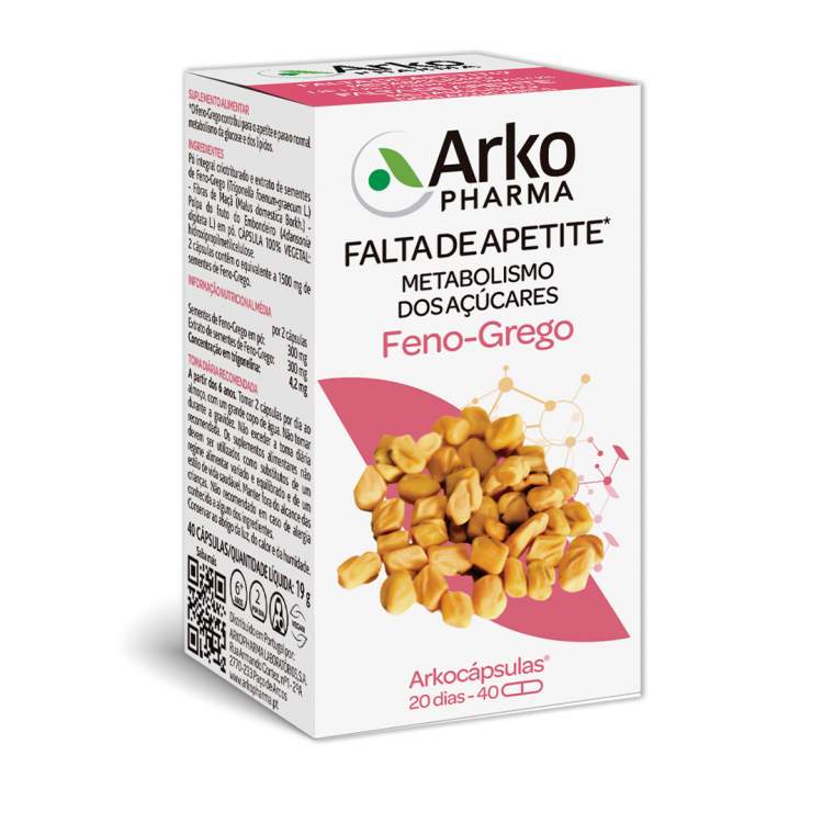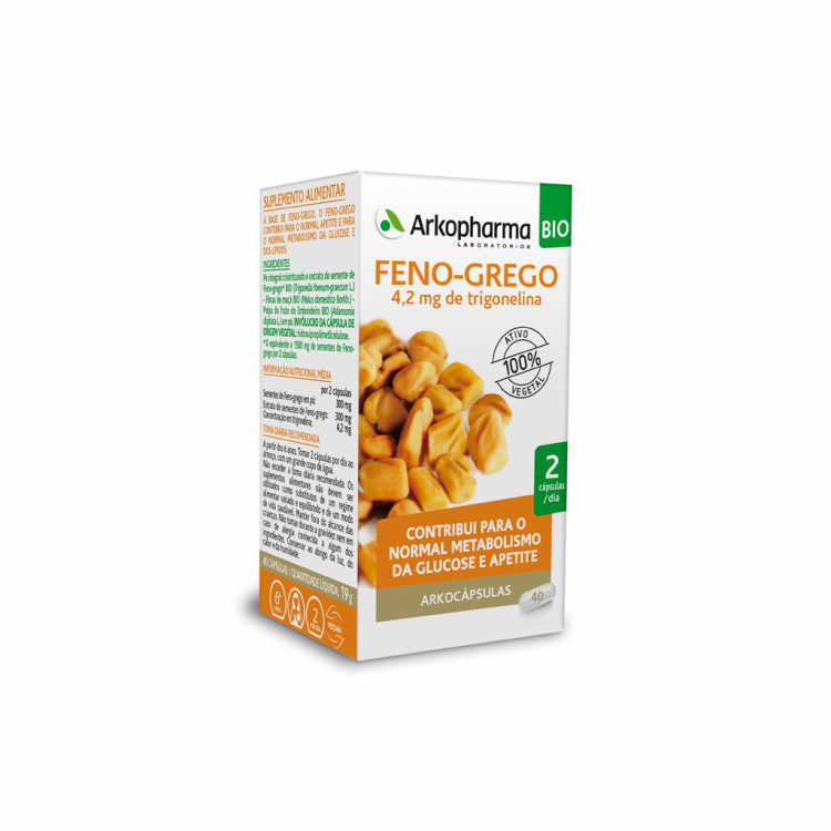[FADIGA e ENERGIA] Suplemento alimentar que favorece o apetite e ajuda a equilibrar o metabolismo dos glúcidos e dos lípidos. A sua fórmula engloba 100% dos princípios do Feno-Grego, que atuam de forma sinérgica, respeitando ao máximo o seu organismo. Contém Pó integral criotriturado e extrato de semente de Feno-grego* BIO (Trigonella foenum-graecum L.), Fibras de maçã BIO (Malus domestica Borkh.) e Polpa do fruto do Embondeiro BIO (Adansonia digitata L.) em pó. Tomar 2 cápsulas por dia ao almoço, com um grande copo de água. Não recomendado na gravidez o amamentação.