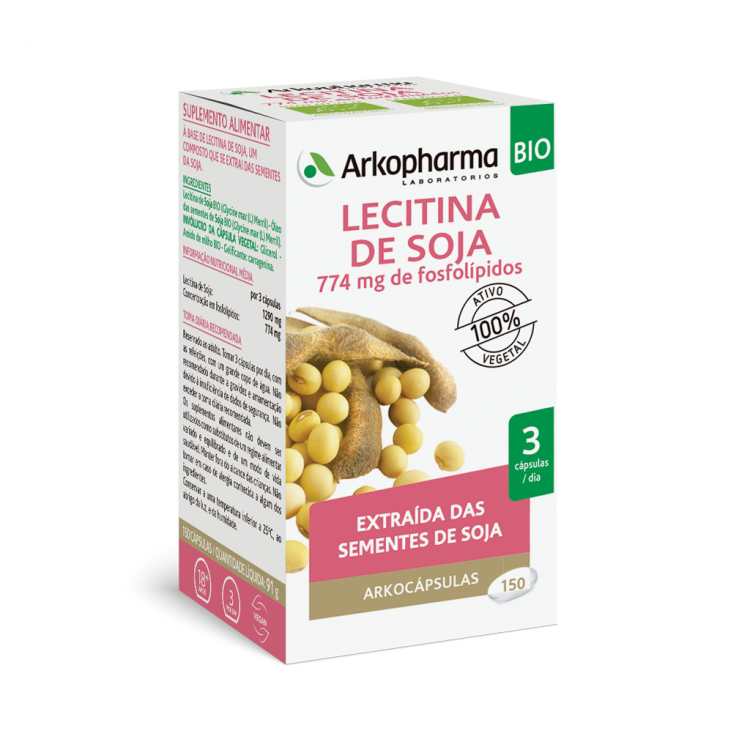 [BEM ESTAR, METABOLISMO] Suplemento alimentar à base de óleo de Lecitina de Soja, um composto que se extrai das sementes da soja. A Lecitina de Soja é uma substância reconhecida pelas suas propriedades antioxidantes e protetoras. Contém por cápsula 550mg de Lecitina de soja (Glycine max (L.) Merrill). Tomar 3 cápsulas por dia, durante as refeições.