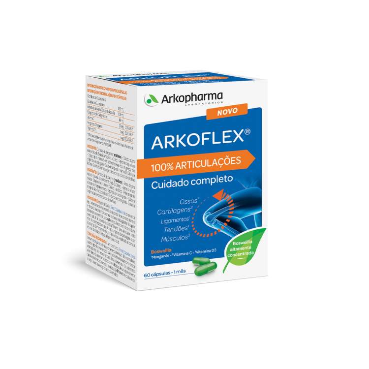 [ARTICULAÇÕES E OSSOS] Suplemento alimentar à base de Glucosamina, Colagénio, Boswellia, Vitaminas C, D3 e Manganês para um cuidado completo das articulações. Contribui para a normal formação de colagénio, importante para o normal funcionamento das cartilagens, para o funcionamento normal da função muscular, para a manutenção da normal condição óssea e formação do tecido conjuntivo. Ajuda ainda a proteger e reforçar as articulações. Adequado a partir dos 15 anos. Tomar 2 cápsulas por dia com um copo água, de preferência no momento da refeição. Não é aconselhável associar com a toma de anticoagulantes.