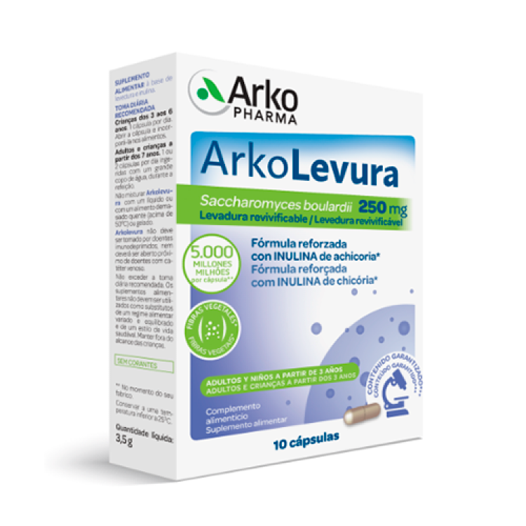 [Digestão] Suplemento alimentar à base de levedura e inulina. A levedura Saccharomyces boulardii é um microrganismo vivo benéfico para o processo digestivo e para o seu equilíbrio. O acondicionamento deste suplemento garante a presença de mais de 2.500 milhões de UFC até ao final do prazo de validade do produto. Posologia: Crianças dos 3 aos 6 anos tomar 1 cápsula por dia (abrir a cápsula e incorporar na alimentação). A partir dos 7 anos 1 a 2 cápsulas por dia durante a refeição.