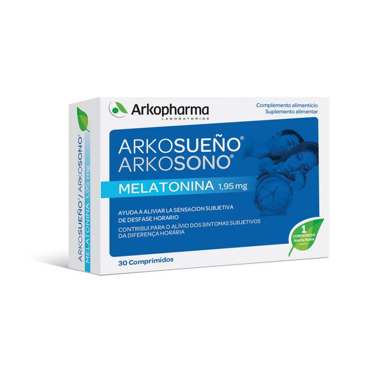 [SONO E STRESS] Suplemento alimentar à base de melatonina para o alívio dos sintomas subjetivos da diferença horária. Cada comprimido contém 1,95mg de Melatonina. Contém lactose. Tomar 1 comprimido antes de se deitar no primeiro dia da viagem e nos 4 dias seguintes após a chegada ao destino. Não associar à toma de outros sedativos.