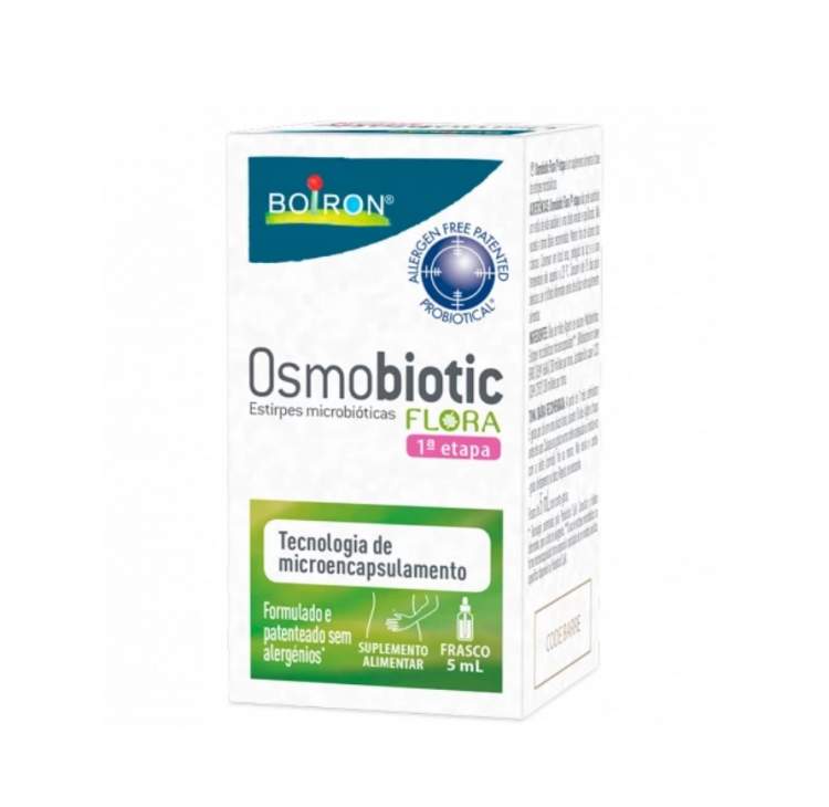 Osmobiotic® Flora 1ª Etapa é um suplemento alimentar à base de estirpes microbióticas, selecionadas pelos seus efeitos comprovados. Uma fórmula única adaptada à 1ª etapa da vida da criança. Tecnologia única de microencapsulamento individual. Livre de alergénios. Forma farmacêutica adaptada. Promove o bem-estar gastrointestinal e reforça o sistema imunitário. Cada suplemento alimentar de Osmobiotic® Flora combina duas estirpes complementares: lactobacilos e bifidobactérias, naturalmente ativas na microbiota intestinal. Dependendo se a fórmula se destina a adultos, crianças à 1ª etapa, a Boiron selecionou as duas estirpes mais adequadas para atender às necessidades de cada organismo. > Osmobiotic® Flora 1ª Etapa Combinação de duas estirpes: Bifidobacterium breve BR03 e Lactobacillus casei LC03.