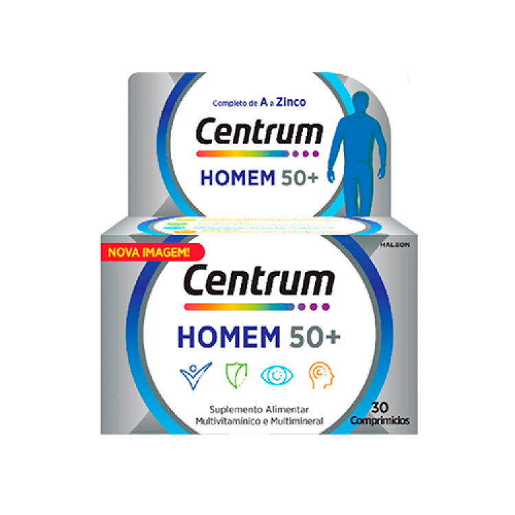 As necessidades de vitaminas e minerais dos homens são diferentes das necessidades das mulheres, mesmo depois dos 50 anos. Centrum Homem 50+ contém uma fórmula especificamente equilibrada com quantidades reforçadas de vitaminas e minerais que ajudam a satisfazer as necessidades específicas de homens com mais de 50 anos. Melhora a saúde cardíaca, dos olhos, cérebro e a função muscular. Fórmula com maior teor de Vitamina D (em comparação com as fórmulas anteriores) que contribui para níveis normais de Cálcio no sangue e para a manutenção de ossos normais. Com Ácido Pantoténico que contribui para um desempenho mental normal, e com Zinco e Ferro que contribuem para uma normal função cognitiva.