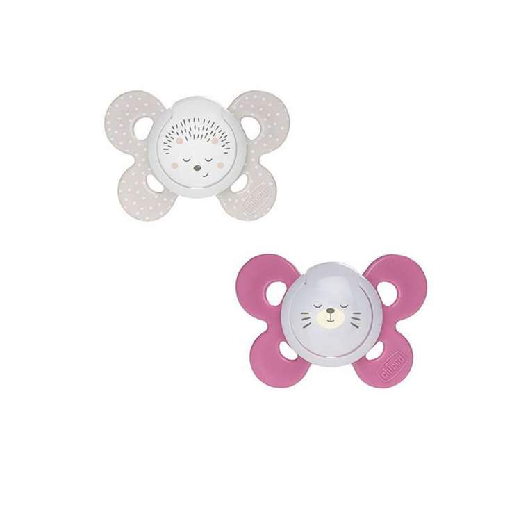 As chupetas PhysioForma Confort são ergonómicas e confortáveis. Assegura o máximo de espaço para o queixo e nariz, facilitando a respiração e os movimentos de sucção. Com apenas 4 superfícies de contacto garantem a máxima liberdade e suavidade sobre a pele do bebé. Suave e em silicone higiénico, sem sabor ou odor e que não deforma com o tempo, a tetina favorece o correto desenvolvimento da boca do bebé e o posicionamento natural da língua. A área existente na base da tetina é grande e espaçosa, garantindo o espaço suficiente para que os lábios do bebé se possam movimentar naturalmente durante a sucção. Disponível em 3 tamanhos diferentes: 0-6m, 6-16m e 16-36m, para assegurar o tamanho correto da chupeta em cada fase do crescimento. Com anel de segurança. Contém caixa de esterilização que permite higienizar as chupetas Chicco no micro-ondas, matando 99,9% dos germes domésticos nocivos em apenas 3 minutos! Basta seguir os próximos passos: Passo 1: Encha a caixa com água até a linha de nível, coloque as chupetas dentro da caixa e feche a tampa Passo 2: Coloque no micro-ondas por 3 minutos a 750 Watts. Espere até que todas as peças arrefeçam Além disso, permite guardar as chupetas quando não estão a ser utilizadas.