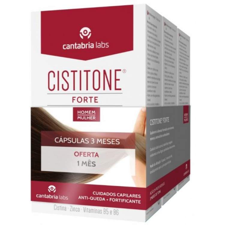 Suplemento alimentar formulado com vitaminas, minerais, aminoácidos e antioxidantes: Cabelo e Unhas. Cuidado intensivo da Queda do Cabelo de qualquer origem, particularmente na devida a agressões do meio-ambiente (AÇÃO ANTIOXIDANTE REFORÇADA). Queda de cabelo sazonal. Cabelo fraco, espigado e seborreico. Unhas frágeis, quebradiças e descamativas. Como complemento de tratamentos anti-queda. COMPOSIÇÃO: 500 mg de L-Cistina, 10 mg de L-Glutationa, Cobre, Zinco, Vitaminas B5 e B6.