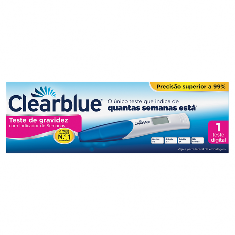 O Teste de Gravidez Clearblue com Indicador de Semanas é o primeiro e único teste tão preciso como uma ecografia na datação da gravidez. Em 3 minutos, o seu Smart Dual Sensor™ indica-lhe se está "Grávida" ou "Não Grávida" e há quanto tempo. Primeiro, deteta a presença da hormona da gravidez com uma precisão superior a 99% a partir do dia esperado para a menstruação e TAMBÉM indica há quantas semanas engravidou, 1-2, 2-3 ou há mais de 3 semanas (+3). O Indicador de Semanas tem uma precisão de 93% na deteção da data de conceção. Pode também fazer o teste até 5 dias antes do dia esperado para a menstruação.