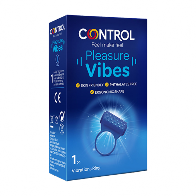 Dar novas vibrações aos momentos de intimidade é transformado num jogo graças ao Pleasure Vibes, o anel vibrante com pontos elevados com um design inovador e ergonômico, que oferece prazer mútuo durante as relações sexuais. Usado juntamente com preservativos Control é estimulante, com pontos e listras ao longo da superfície, torna o relacionamento ainda mais excitante. Material em silicone. Não é impermeável. Utilização única de aproximadamente 20 minutos.
