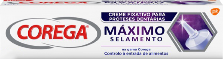 Corega Máximo Selamento foi desenhado para ajudar a selar e proteger contra partículas de alimentos enquanto oferece uma fixação firme e duradoura. O novo bucal de precisão, com uma ponta mais fina, permite que a quantidade certa de produto seja aplicada na prótese formando um Máximo Selamento. O benefício do novo Corega Máximo Selamento é sobretudo saber que o facto de utilizar prótese dentária não o impeça de comer aquilo que mais gosta. Ajudando a manter a sua prótese confortável e fixa, o fixativo dá-lhe a liberdade de desfrutar dos alimentos que gosta, se estiver em casa ou até mesmo a jantar fora. Ajuda a evitar que as partículas dos alimentos fiquem presas entre a sua prótese e as gengivas.