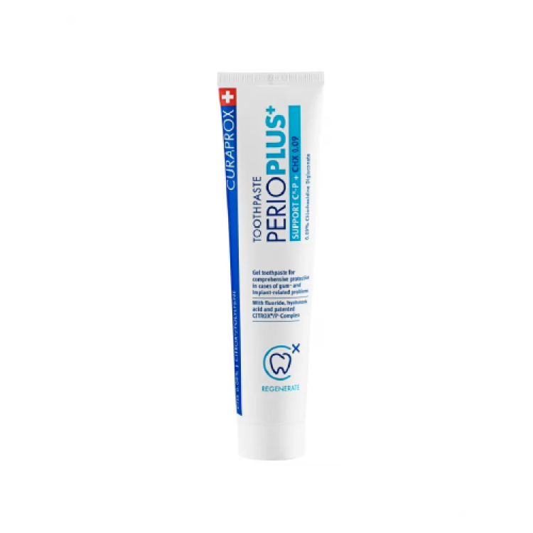 Por não conter LSS (lauril sulfato de sódio), a pasta de dentes Perio Plus+ Support é a opção ideal para utilizar em conjunto com qualquer colutório Perio Plus+, protegendo os dentes e as gengivas de doenças orais. Concentração de clorohexidina: 0.09%. Contém também ácido hialurónico. A pasta de dentes Perio Plus+ Support elimina o agente espumante SLS e por isso não inibe o efeito da clorexidina no elixir bucal.
