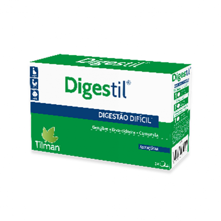 Tilman Digestil é um suplemento alimentar que ajuda a aliviar a azia e indigestão. A sua composição à base de Gengibre, Erva-Cidreira, Camomila, Óleos essenciais de Laranja Amarga, Cardamomo e Canela, possui propriedades calmantes, anti-inflamatórias e anti-flatulentes e permite estimular uma normal digestão, aliviar espasmos gástricos, melhorar a motilidade gástrica e promover a secreção de saliva e do suco gástrico. Possui uma ação rápida, com um perfil de segurança optimizado, sem sais de alumínio (para não provocar obstipação) e sem açúcar. Apto para diabéticos, doentes cardiovasculares e crianças a partir dos 4 anos de idade. Posologia: +4 anos: 1 a 4 past./dia; +12 anos: 1 a 6 past./dia; Grávidas (+4M): 1 a 4 past./dia (máximo 3 dias consecutivos).