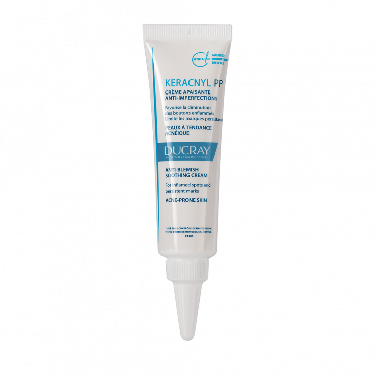 Keracnyl MAT hidrata e matifica a pele mista a oleosa, neutralizando o brilho de forma imediata e duradoura e fechando os poros. A sua fórmula contém pós matificantes que ajudam a manter um efeito matificado duradouro até 12 horas. Ajuda a encerrar os poros e alisa a textura da pele, tornando-a mais uniforme. No estudo clínico realizado a satisfação quanto à pele matificada foi de 98%, enquanto que da uniformização do grão da pele de 98%. Este estudo compreendeu pessoas entre os 15 e 45 anos que utilizaram este cuidado durante 28 dias. Não comedogénico. Substâncias ativas: Pós matificantes, X-pressin e Monolaurina.
