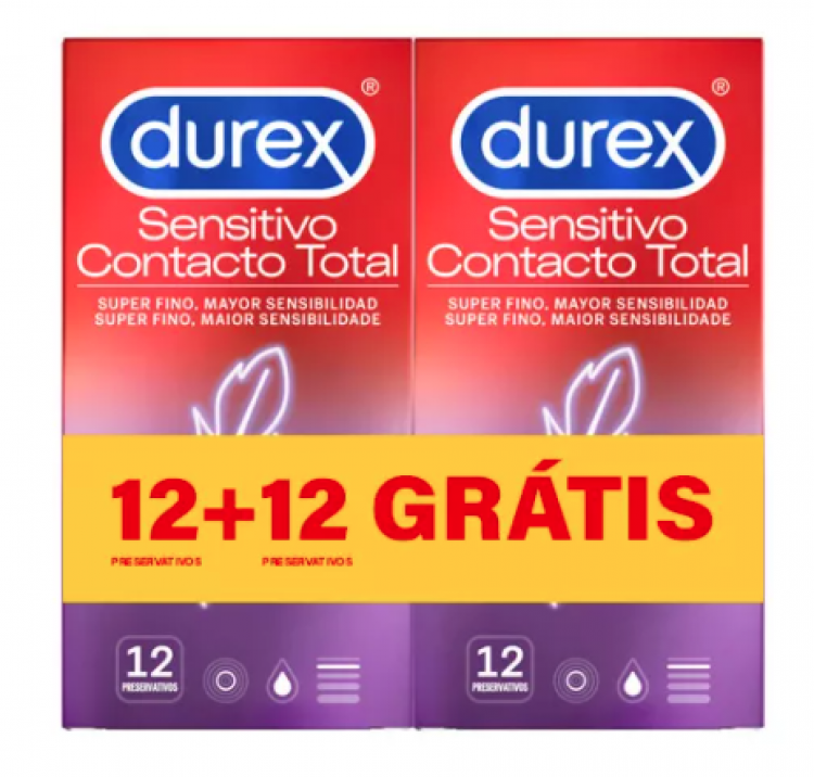 Durex Duo Sensitivo Contacto Total Preservativos - 2x 12un