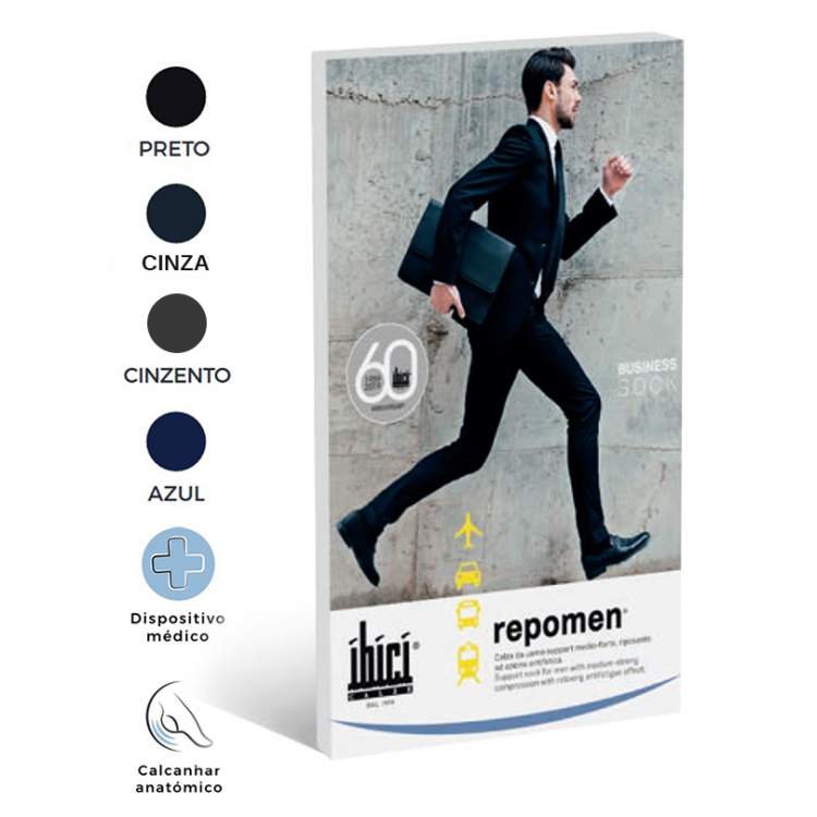 Embalagem com 1 par de meias de tamanho M (41/42). Cor: Preto. Compressão: 16/20 mmHg (140).