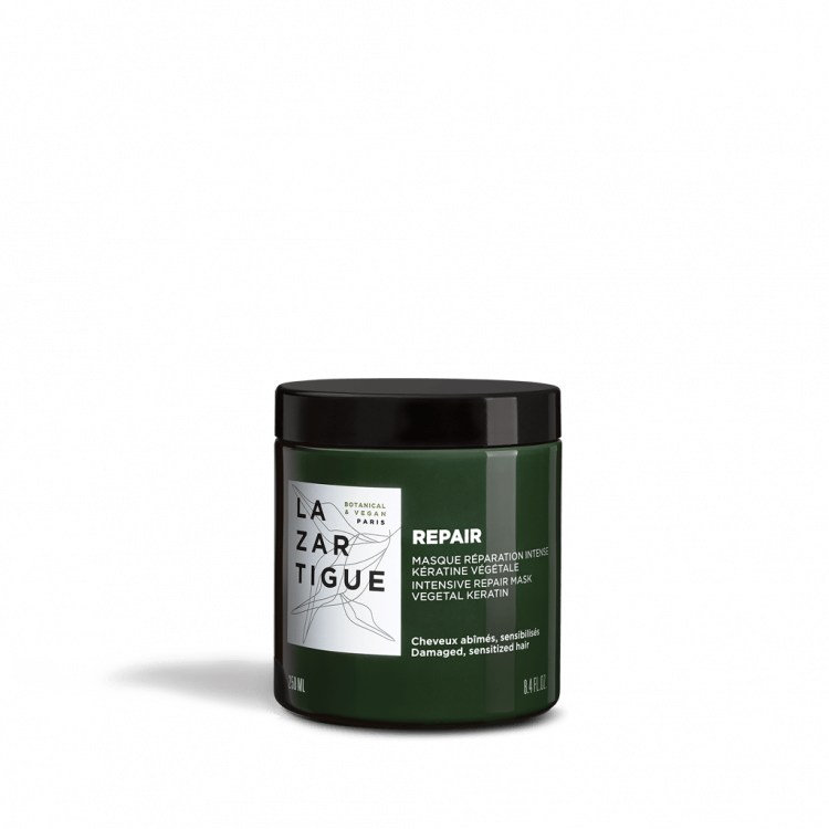 Máscara de reparação rica em Queratina vegetal, Ácido Hialurónico e Óleo da Abíssinia que ajuda preencher as pontas espigadas, selar a cutícula, reconstruir a fibra capilar e hidratar e nutrir em profundidade. Fórmula vegan, com 91% de ingredientes de origem natural, sem sulfatos, nem silicones.