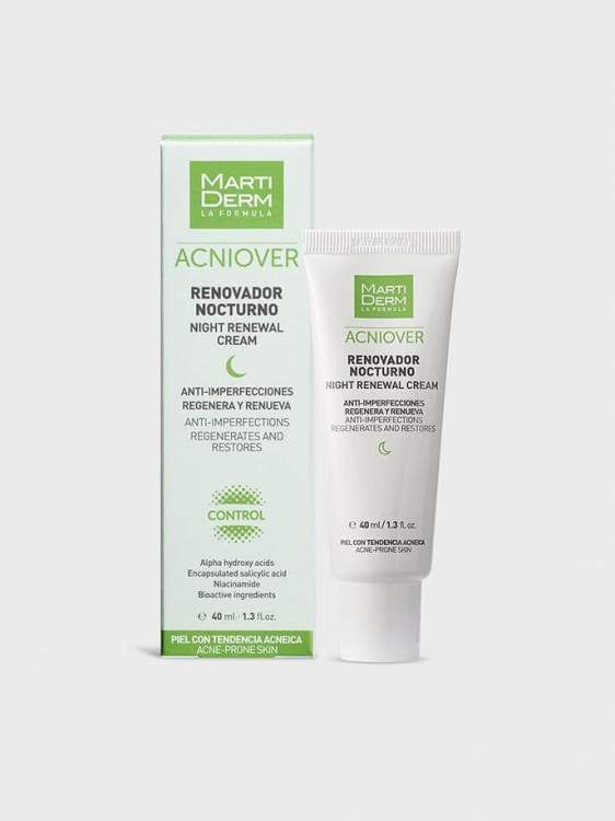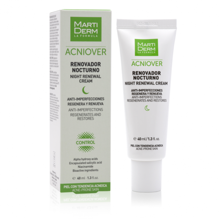 Creme renovador que estimula a regeneração cutânea, reduz as imperfeições e minimiza os poros. Graças à combinação dos seus ingredientes: complexo de alfa-hidroxiácidos (ácido glicólico e ácido mandélico), ácido salicílico, nicotinamida e bioativos vegetais, é o creme de uso noturno diário ideal para as peles oleosas e com tendência acneica. Aplicar à noite até à sua completa absorção.