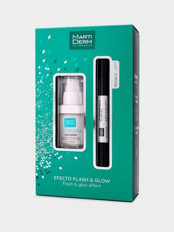 Embalagem com 1x MartiDerm Flash Sérum 30ml e 1x Lip Supreme Bálsamo 4,5ml (Oferta). Valor real estimado 40€.