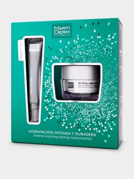 Obtenha uma hidratação profunda e duradoura com este coffret de rotina. Contém GF Vital-Age Cream com ação reparadora que proporciona um efeito rejuvenescedor ao repor a vitalidade da pele. E, como oferta, o Shot Hyaluronic Firm que, graças aos seus 2 ingredientes únicos, hidrata, refirma e ajuda a reduzir o aparecimento de rugas.