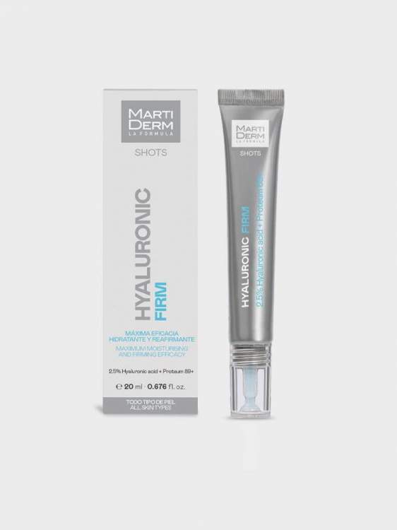 Gel concentrado com um complexo de 5 tipos de ácido hialurónico de diferentes pesos moleculares que trabalham em sinergia com Proteum 89+, o proteoglicano exclusivo da MartiDerm. Proporciona hidratação intensa e duradoura, ajudando a reduzir a aparência das rugas e refirmar a pele para um efeito redensificador. Textura leve, fresca e de rápida absorção. Aplicar de manhã e/ou à noite uma pequena quantidade de produto sobre o rosto limpo e seco.