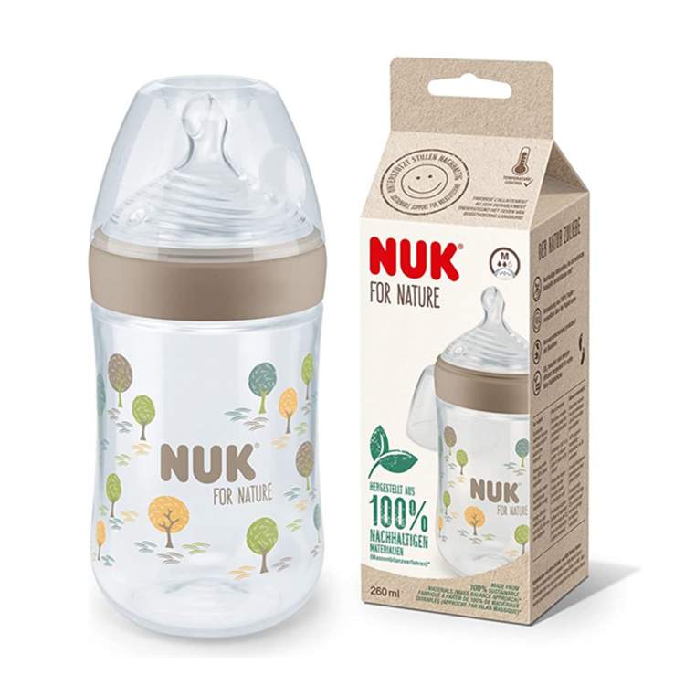 Biberão feito de materiais 100% sustentáveis e a partir de eletricidade verde. Possui uma tetina flexível e adaptável à boca do bebé, com pequenos orifícios inspirados nos ductos mamários da mama da mãe e que garantem um fluxo de leite suave e natural. A tetina tem uma base de apoio mais larga e flexível permitindo ao bebé controlar o fluxo de leite. A inovadora válvula anti-cólicas torna possível ao bebé beber sem pausas, o que ajuda a prevenir a ingestão de ar. O biberão possui ainda um sistema para verificação da temperatura, se o leite estiver muito quente, o indicador (parece um termómetro) que normalmente está azul, mudará para branco. Idealmente, a comida para bebé deve estar à temperatura corporal (37 ° C = tom azul médio).