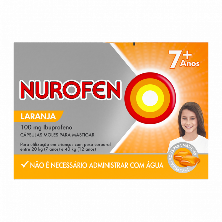 Nurofen 100mg Cápsulas Moles para Mastigar contém ibuprofeno e proporciona alívio da dor, inflamação e febre até 8h. Desenvolvido sob a forma de cápsulas moles para mastigar , Nurofen 100mg Cápsulas Moles para Mastigar é ideal para que as crianças não tenham que passar pelo desagradável momento de engolir um comprimido. Com dosagem precisa e sem necessidade de água, Nurofen 100mg Cápsulas Moles para Mastigar é uma forma prática de cuidar dos mais pequenos. Está indicado no tratamento sintomático da dor ligeira a moderada e da febre. Para crianças com mais de 7 anos: Para crianças entre 20kg - 29kg administrar até 2 cápsulas moles para mastigar , 3 vezes por dia. Para crianças entre 30kg - 40kg administrar até 3 cápsulas moles para mastigar , 3 vezes por dia.