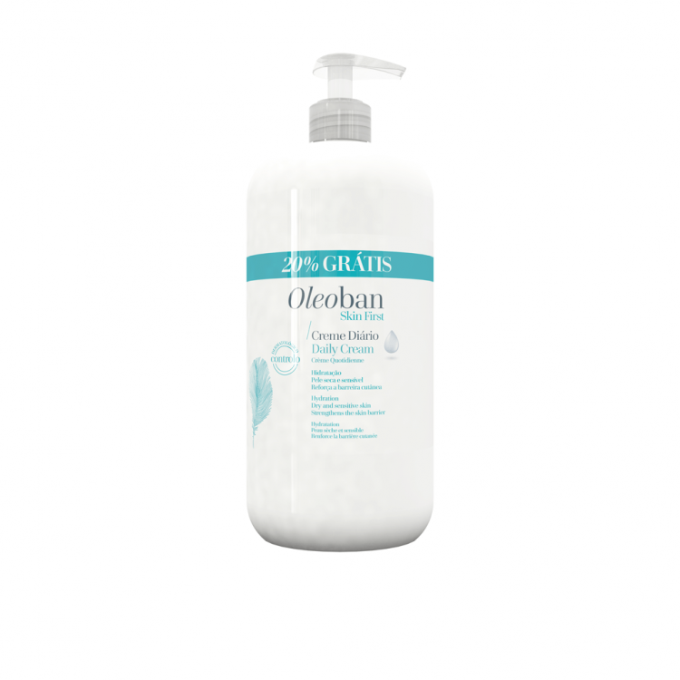 OLEOBAN ® Creme diário ajuda a pele a manter a sua hidratação natural. Constitui o complemento ideal da higiene diária de toda a família, exceto crianças com idade inferior a 3 anos. Indicado como hidratante corporal, após o banho, exposição solar, frio e vento. Adequado para peles sensíveis ou reativas. A sua composição equilibrada confere-lhe uma textura agradável e propriedades hidratantes e emoliantes. Melhora a função barreira da pele e a hidratação. Ajuda a reduzir a frequência das irritações da pele, proporcionando-lhe uma sensação de conforto ao longo do dia. OLEOBAN® Creme Diário é fácil de espalhar e rapidamente absorvido pela pele.