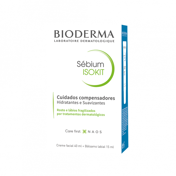 Cuidados hidratantes para peles oleosas temporariamente secas e fragilizadas. Sébium Hydra: cuidado compensador, hidrata intensamente e acalma a pele. Atoderm Bálsamo Labial: Nutre e repara os lábios secos, prevenindo a queilite. MODO DE EMPREGO Sébium Hydra: aplicar 2 vezes ao dia. Atoderm Bálsamo Labial: aplicar sempre que necessário. Cuidado compensador de rosto e lábios para tratamentos com isotretinoína oral.