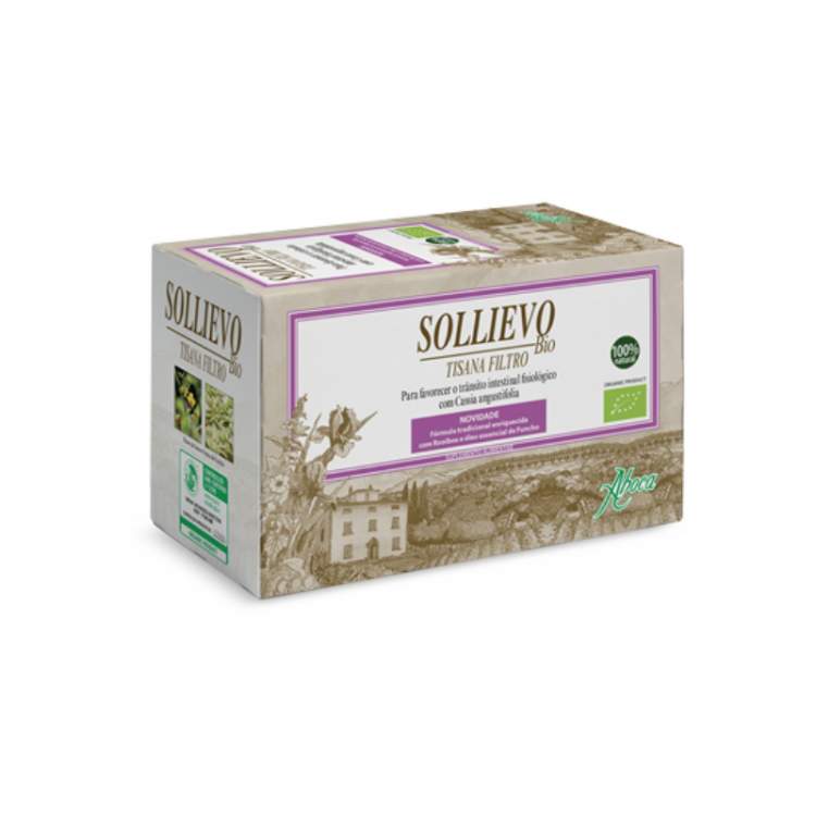 Sollievo Bio Tisana é útil para favorecer o trânsito intestinal fisiológico graças à presença de fitocomplexos de: Sene, que exerce uma ação específica no trânsito intestinal; Funcho e Cominho-dos-prados, que favorecem a eliminação dos gases intestinais; Malva, Erva-cidreira e Alcaçuz, que ajudam nos processos digestivos fisiológicos. Sollievo Bio Tisana, produto biológico e 100% natural, pelas características da sua ação, é indicado para ser utilizado consoante a necessidade. Além disso, a presença de Rooibos e Funcho, enriquecido com o seu óleo essencial, confere à tisana um sabor agradável mesmo sem a adição de açúcar, se necessário, recomenda-se a adição de mel. Recomenda-se que tome uma chávena de tisana à noite, quando sentir necessidade. Um filtro é suficiente para preparar uma chávena de tisana (cerca 200 ml). Após ferver a água, deite-a numa chávena com a saqueta filtro, com o cuidado de manter coberto o recipiente para que as substâncias mais voláteis não dispersem.