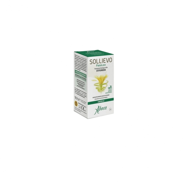 Dispositivo médico 100% natural indicado para o tratamento da obstipação. O conjunto de substâncias presentes, atuam sobre as múltiplas funções utilizadas normalmente pelo intestino, para regular o trânsito intestinal. Por conseguinte, Sollievo FisioLax atua com um mecanismo de ação não-farmacológico. Contribui para aumentar a motilidade intestinal, aumenta a hidratação das fezes, reforça e protege a parede e mucosa intestinal e controla a inflamação, permitindo assim uma ação laxante eficaz e menos agressiva. Recomenda-se tomar entre 1 a 3 comprimidos à noite, quando sentir necessidade, com um abundante copo de água. A dose correta é a mínima suficiente para favorecer o trânsito intestinal fisiológico sem produzir fezes líquidas, por isso pode ser personalizada de acordo com as exigências individuais. O produto é recomendado a partir dos 12 anos de idade.