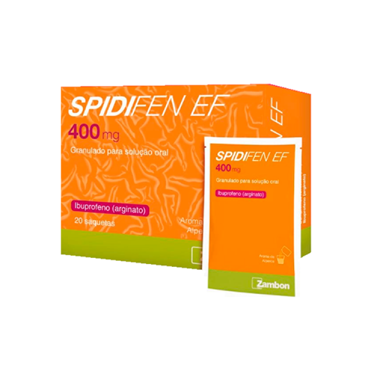 O Spidifen EF é um medicamento não sujeito a receita médica de venda exclusiva em farmácia com ação analgésica e anti-inflamatória, que alivia a dor e reduz a inflamação. Está indicado para o tratamento da dor de diversas origens: dor de cabeça e enxaquecas, dor de dentes, dores menstruais, nevralgia, dor reumática, dor muscular ou sintomas de febre e gripe. A absorção é 3x mais rápida do que a do Ibuprofeno tradicional graças à Arginina, um excipiente que proporciona uma absorção mais rápida do Ibuprofeno e a consequente redução do tempo de contacto com a mucosa gástrica, comparativamente às fórmulas convencionais. Para mais informações, consulte Ibuprofeno e Arginina. O ibuprofeno é uma das moléculas mais bem toleradas dentro do grupo dos AINE a nível do trato gastrointestinal. Está indicado em adultos e adolescentes com mais de 12 anos de idade.