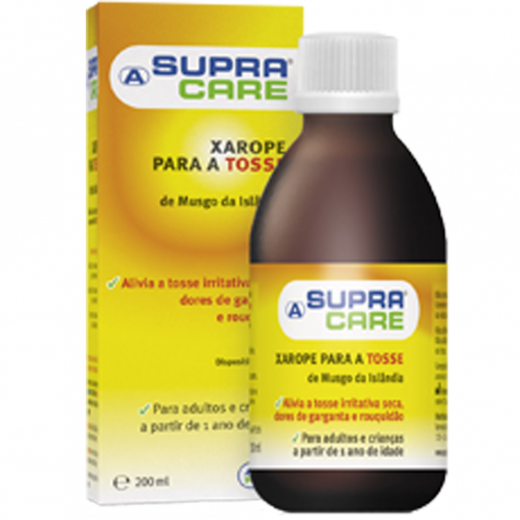 Supracare é um xarope para a tosse à base de Musgo da Islândia. Alivia a tosse irritativa seca, dores de garganta e rouquidão. Graças às suas propriedades adesivas, as mucilagens atuam sobre as mucosas, aderindo e criando uma película protetora com efeito barreira, que evita o contacto com agentes irritantes. Paralelamente, têm um efeito lubrificante e hidratante sobre as mucosas e o muco, atenuando as inflamações.