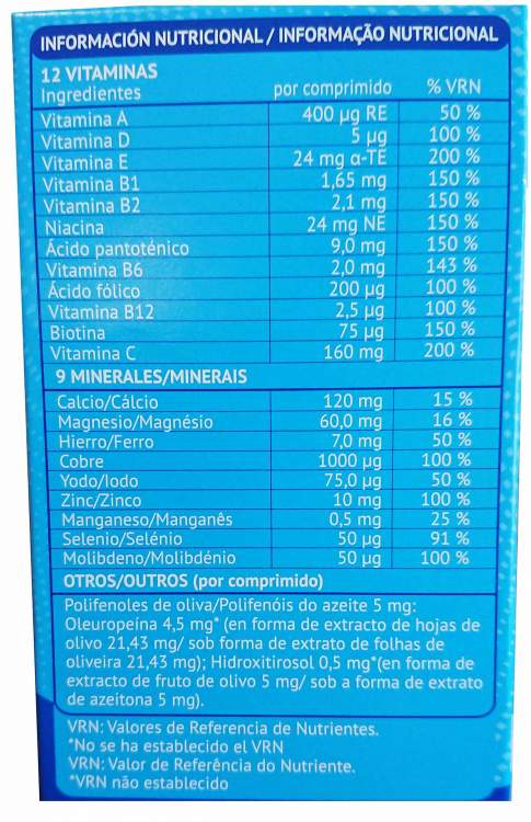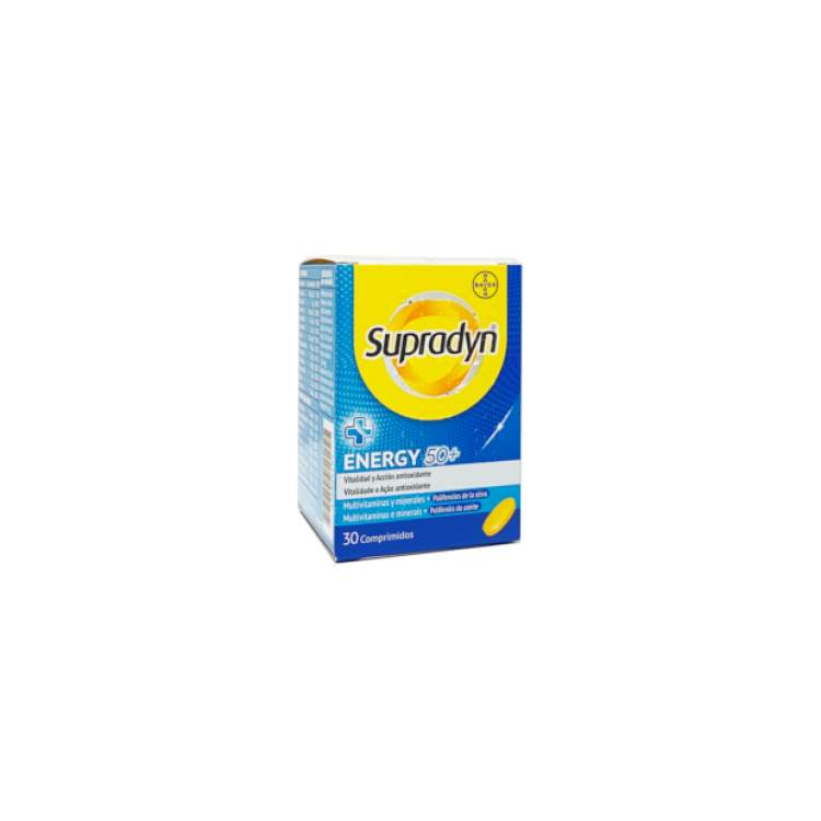 Supradyn Energy 50+ é um multivitamínico formulado para quem se quer manter ativo. Cada comprimido, para além de ser fácil de engolir, contém 12 vitaminas e 9 minerais para ajudar a manter a energia e a vitalidade física. O complexo de Vitaminas B contribui para o normal metabolismo produtor de energia, e a Vitamina C contribui para o normal funcionamento do sistema imunitário. O Zinco e o Selénio estão entre os antioxidantes que protegem as células contra oxidações indesejáveis. Tome um comprimido de Supradyn Energy 50+ Comprimidos por dia para mais Energia e Vitalidade!