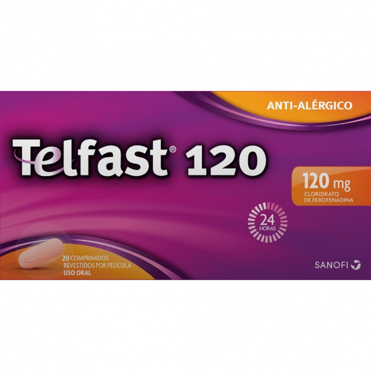 Telfast 120mg é indicado no alívio dos sintomas associados à febre dos fenos (rinite alérgica sazonal) tais como espirros, comichão no nariz, garganta e olhos, corrimento nasal, nariz entupido e olhos vermelhos e lacrimejantes. Telfast atua em 1h e mantém a sua eficácia durante 24h, após início do tratamento, sem efeito sedativo. Tomar 1 comprimido por dia, antes de uma refeição.