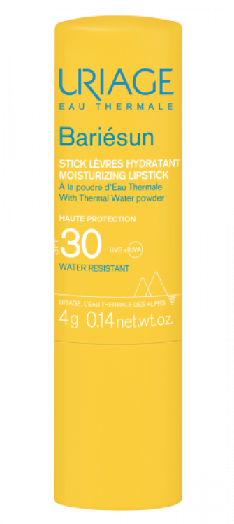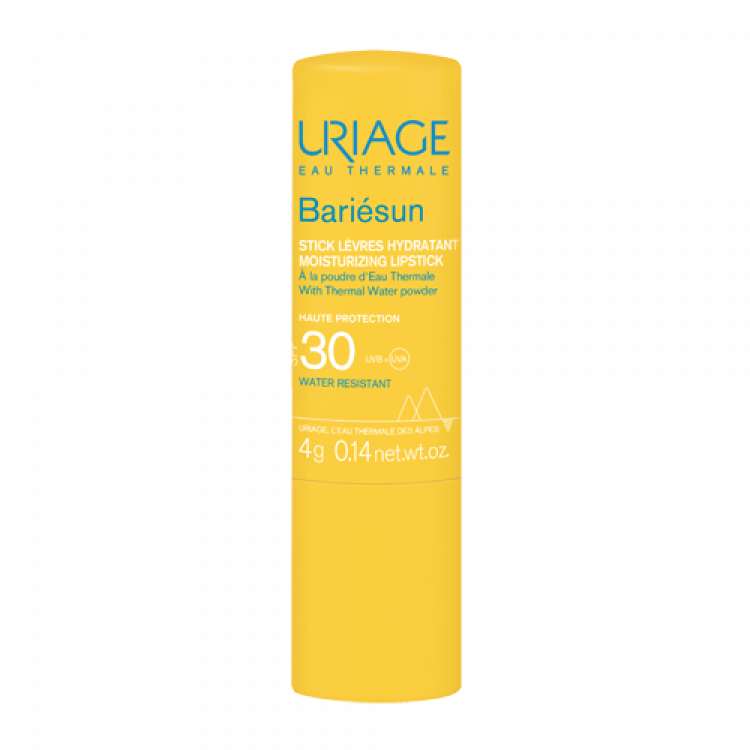 Stick solar labial hidratante, com proteção UVA e UVB. Protege os seus lábios da radiação solar ao mesmo tempo que os hidrata e repara em profundidade, promovendo o seu conforto. Possui uma textura ligeira e não oleosa. Formulado com Complexo filtrante UVA-UVB, Manteiga de Karité, Vitaminas A, C e E e Pó de Água Termal de Uriage. Resistente à água.