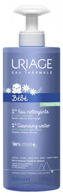 Água de limpeza suave, sem enxaguamento, que elimina as impurezas ao mesmo tempo que acalma, suaviza e protege a pele delicada do bebé. A sua fórmula está enriquecida com o complexo natural [Água Termal de Uriage + Edelweiss Biológico] e possui uma base lavante suave, sem sabão e com pH fisiológico, que não seca a pele. Contém complexo natural [Água Termal de Uriage + Edelweiss Biológico]. Indicada para a higiene diária do rosto, corpo e rabinho do bebé.