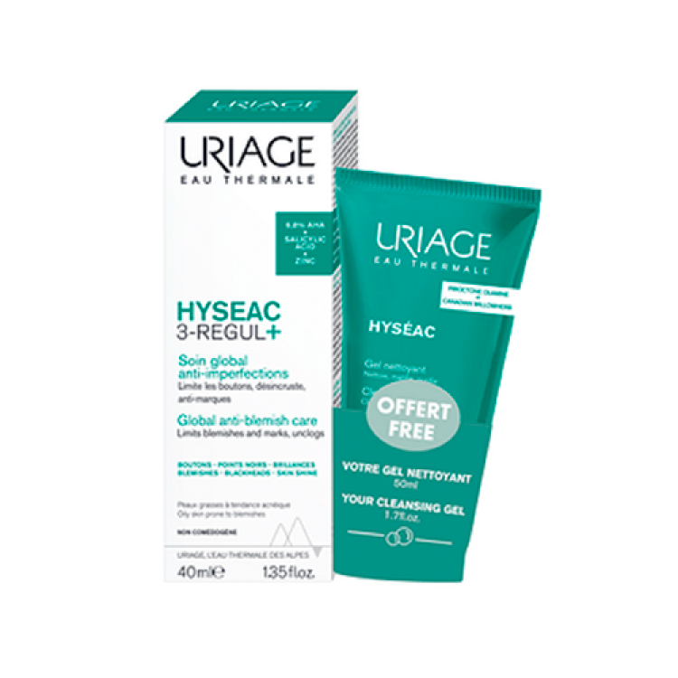 O cuidado HYSEAC 3-Regul+, com 4 patentes dermatológicas e ingredientes dermatológicos chave e reconhecidos, é o cuidado global anti-imperfeições para reequilibrar o microbioma da pele com tendência acneica, desobstruir, matificar e corrigir todos os tipos de imperfeições: manchas, pontos negros, brilho da pele, poros, vermelhidão e marcas cutâneas. Limita as imperfeições persistentes, anti-recidiva.