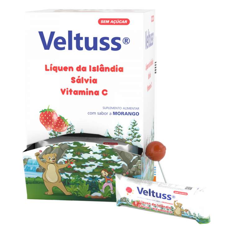 Suplemento alimentar para a tosse e garganta irritada em forma de chupa-chupa, sem açúcar e com sabor a morango. Contribui para a saúde das vias respiratórias e reforça a imunidade.